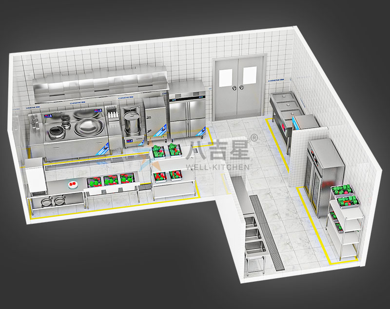 八吉星大型食堂廚房工程解決方案,專供機關,學校,企業,工廠,部隊等特定場所大型廚房工程,提供廚房功能區設計,廚房設備配套。可根據具體場景功能需求由專業的食堂廚房工程師量身定制。